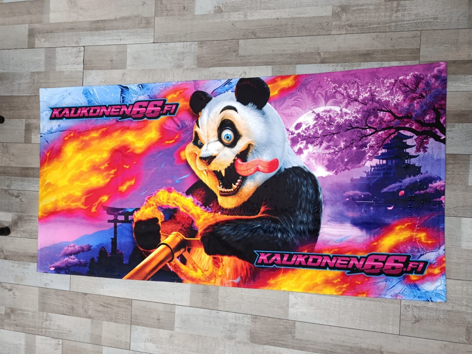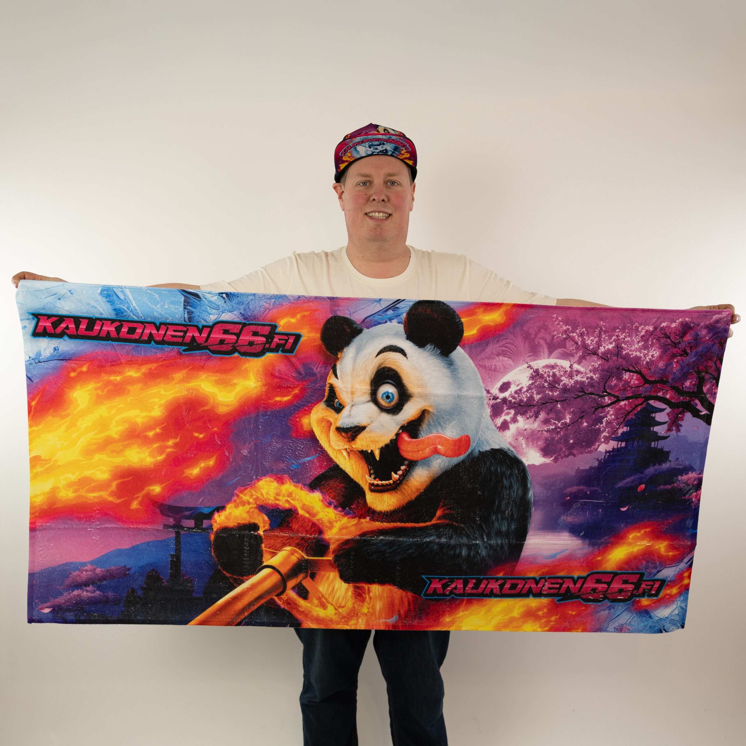 Driftpanda 2.0 grafiikalla oleva pyyhe.